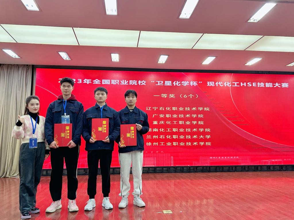2023年12月21日至22日,太阳成集团tyc122cc员工吴忠兵、刘云飞,温国豪,组队参加2023年全国高职院校现代化工HSE技能竞赛,荣获一等奖。本次比赛由全国石油和化工职业公司产品指导委员会指导,中国化工教育协会主办,徐州工业职业技术公司承办,共有来自包括淮南联合大学、兰州石化职业技术大学、海南科技职业大学等在内的本专科公司共45支队伍参加,共评出6个一等奖。