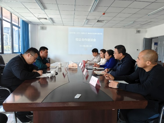 座谈会上,卢德炳对张云飞、李猛的到访表示热烈欢迎,他表示希望通过本次座谈,建立校企合作联系,以共建校企实习就业基地为目标,为双方赋能,在毕业生就业、实习实训、人才培养、课程建设等方面共谋合作。