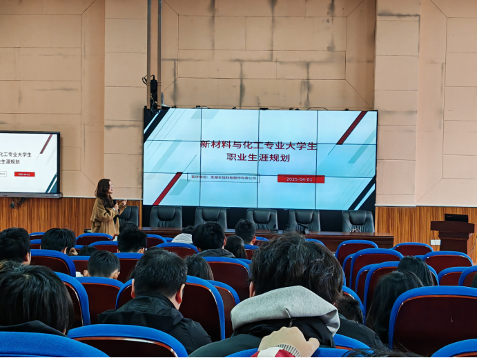 讲座围绕职业发展核心环节展开,庞娟首先通过案例分析,强调职业规划对个人发展的导航作用,建议同学们结合专业特色建立动态调整机制。在行业分析环节,系统梳理了新能源材料、化工新材料等对口领域的发展趋势,并针对研发、质检、技术支持等岗位进行能力矩阵进行解析。庞娟还根据自身实际情况现身说法,强调个人能力提升的重要性,同时也指出高情商在工作中的重要作用。在互动交流环节,同学们积极提问,围绕实习机会、职业晋升路径、技能提升方法等问题展开了热烈讨论。本次讲座是公司“职”引未来,“材”华绽放系列活动的重要环节,后续将继续坚持校企联动,构建全程化就业指导机制。