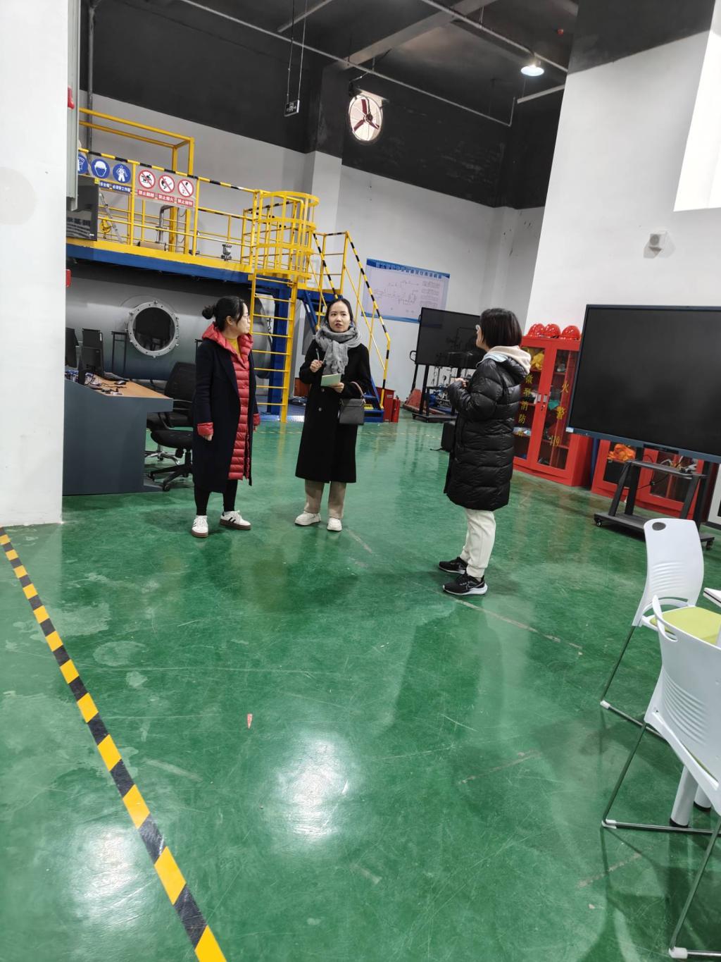唐利平率队检查实训中心水电系统运行、实验仪器及化学药品管理、废弃物回收流程以及相关记录,强调了实验实训规范操作流程。