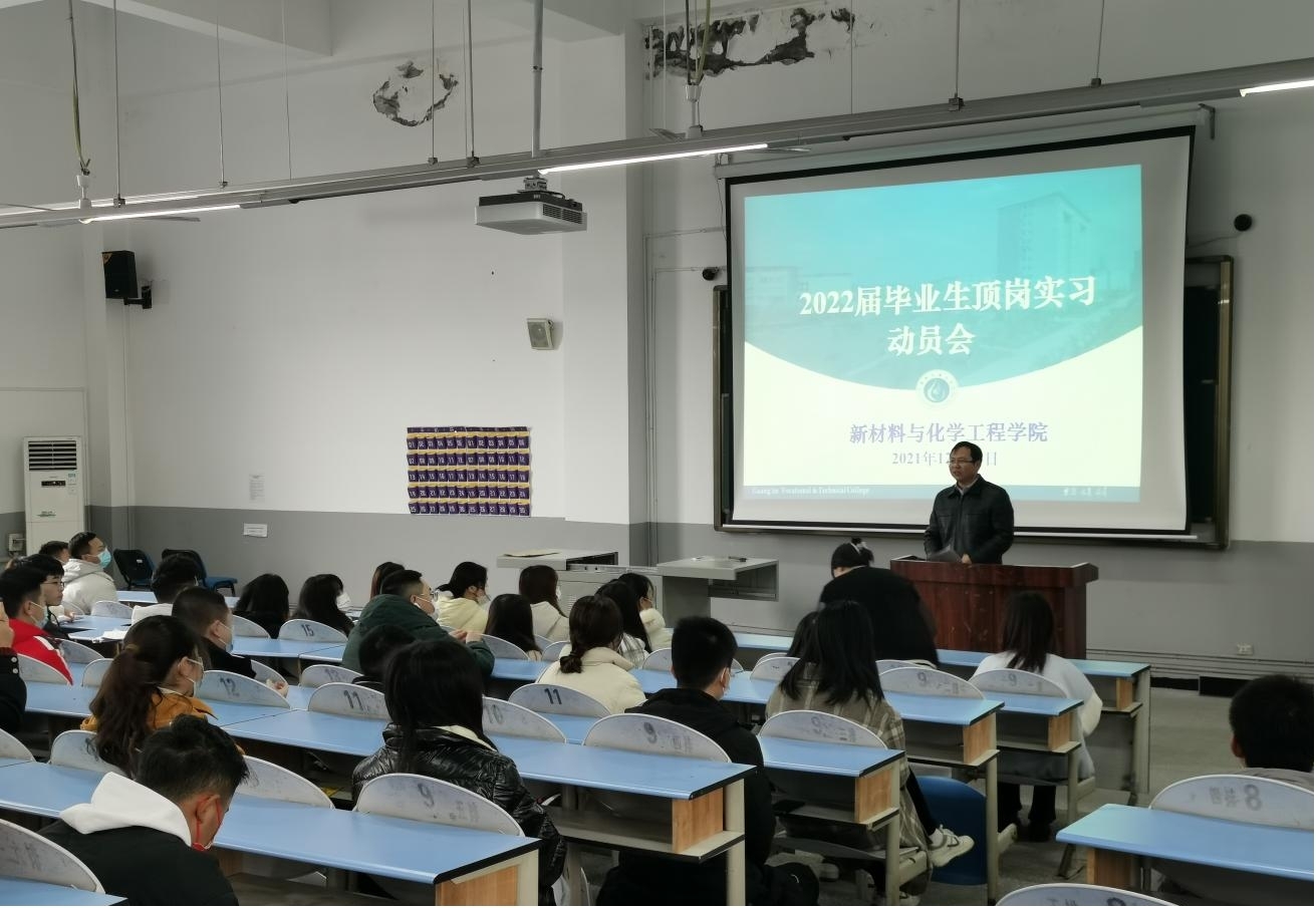 按照《国家职业教育改革实施方案》(国发〔2019〕4号)文件要求,为了有效提高公司顶岗实习的开展力度,促进实习工作的顺利进行,太阳成集团tyc122cc于12月28日下午3:00在致用楼阶六开展了顶岗实习动员大会。参加会议的有教学副经理孔新海、教学管理科老师、毕业班班导师以及2022届全体毕业生。